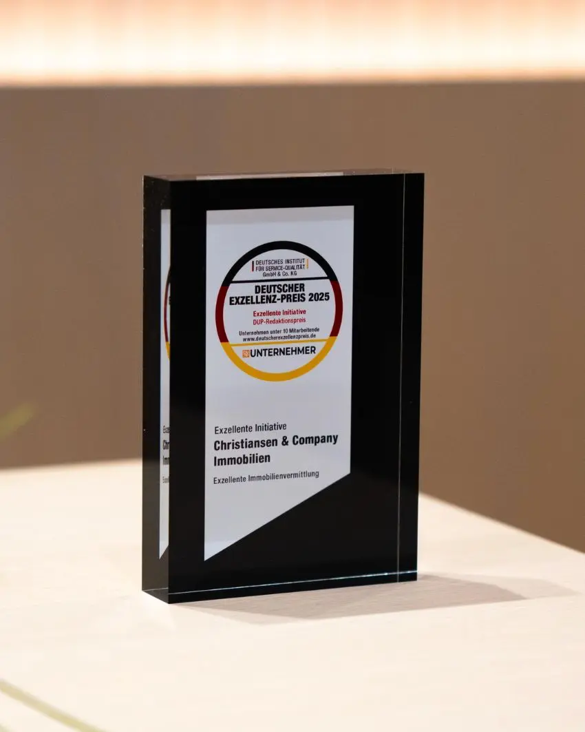 Wir bewerten präzise, vermarkten gezielt und verhandeln mit einem klaren Ziel: Für Sie den bestmöglichen Preis herauszuholen. Deshalb wurden wir mit dem Deutschen Exzellenzpreis 2025 ausgezeichnet.